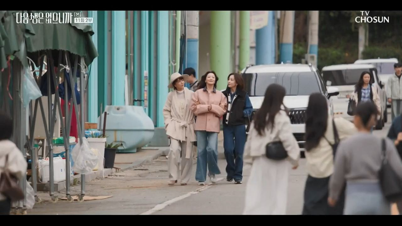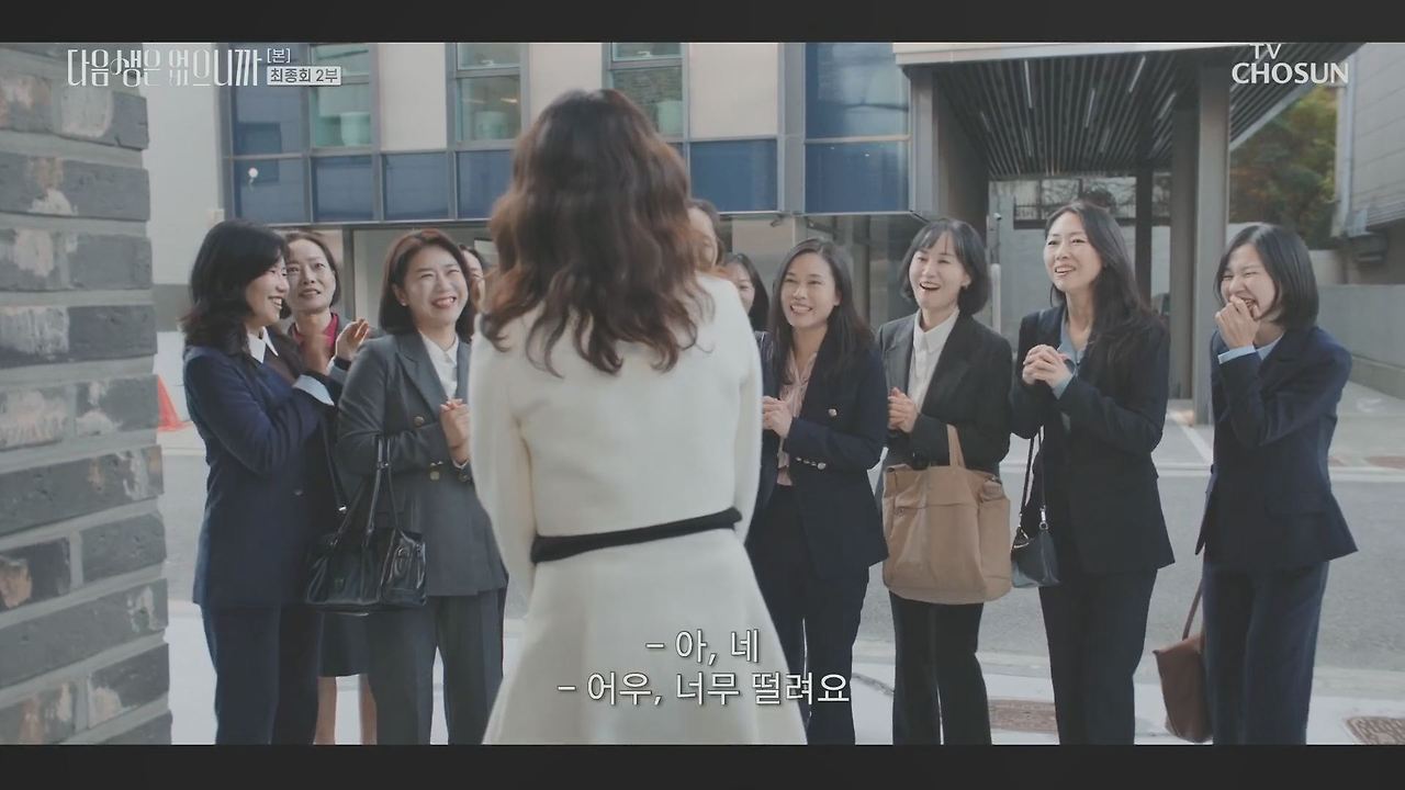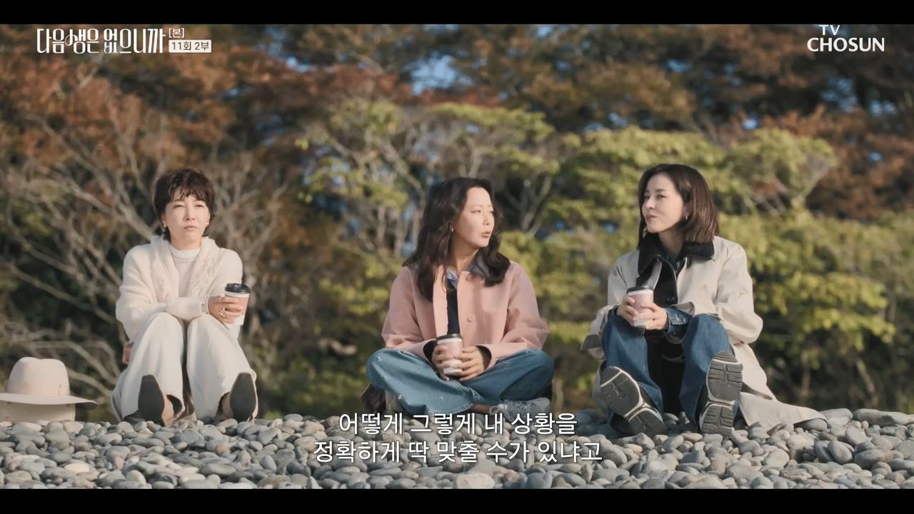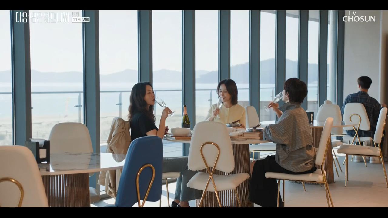 눈부시게 반짝이는 유리창 너머, 도심 한복판 고층 오피스의 소란이 잦아든 밤. 핸드백을 가볍게 든 세 친구가 나란히 계단을 내려오고, 뒤이어 ‘이번 생엔 더 이상 미룰 수 없다’는 듯 한 마디가 흘러나온다. 이 장면의 공간은 결국 현실과 맞닿아 있다 — 바로 다음생은 없으니까의 이야기 무대이자, 우리가 일상 속에서 마주했던 수많은 결심과 마찬가지로 ‘이번 생에 제대로 살아보자’는 결심이 맺혔던 장소다.