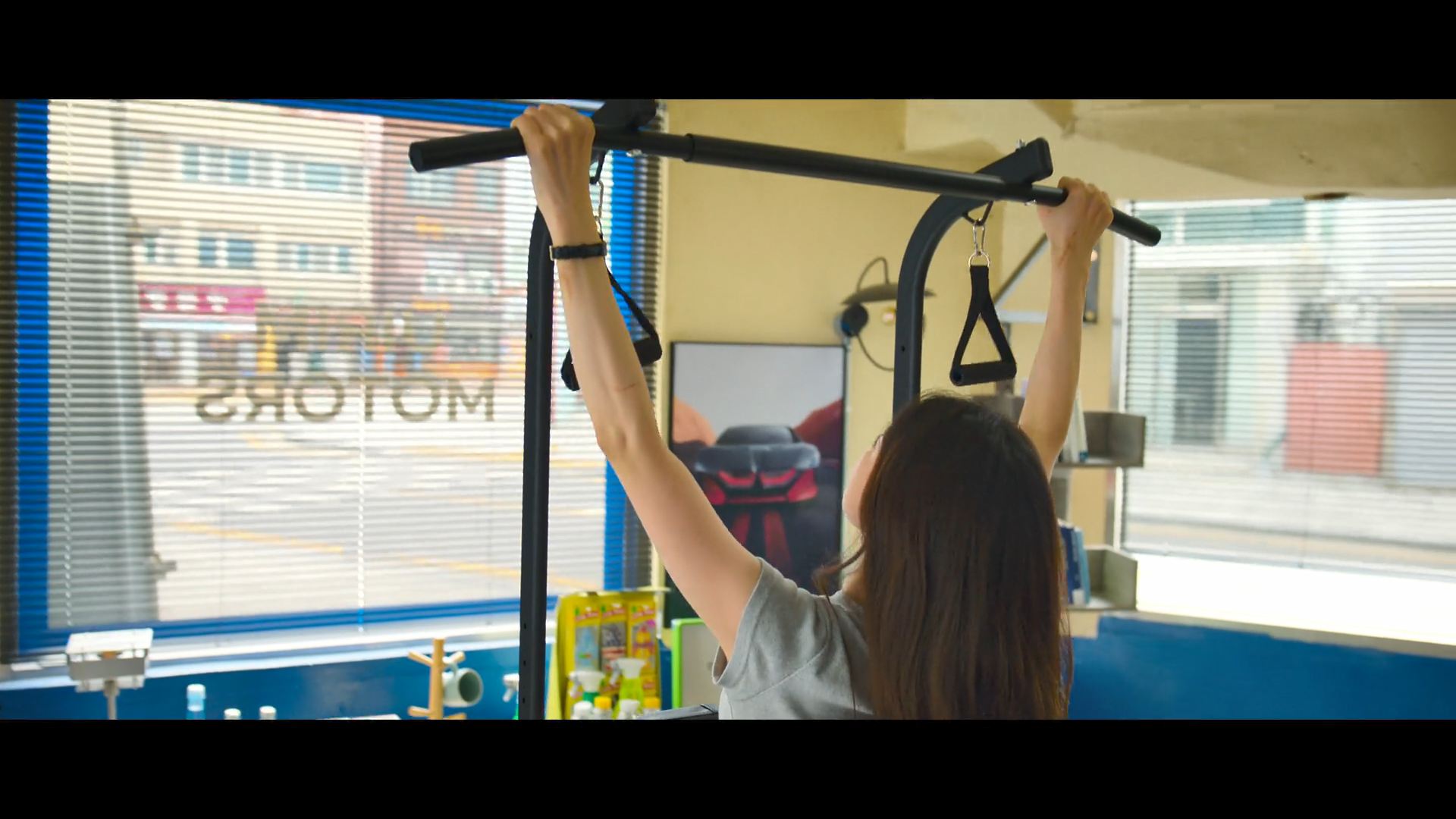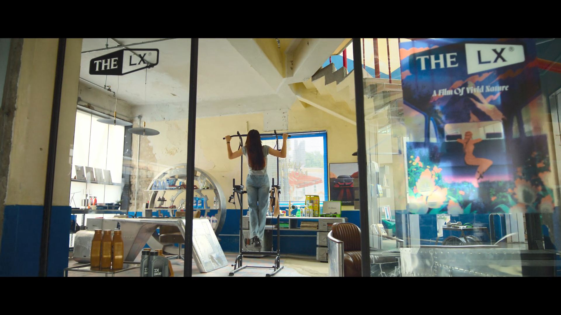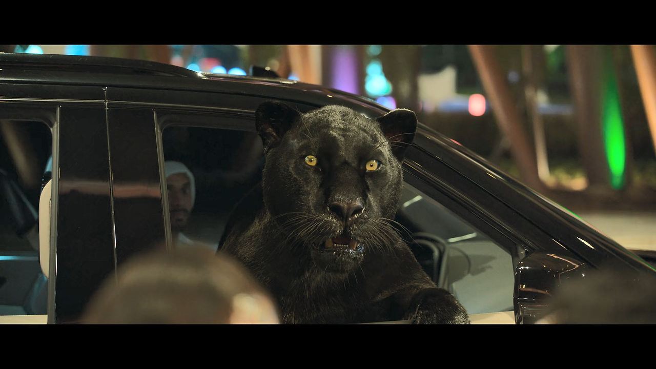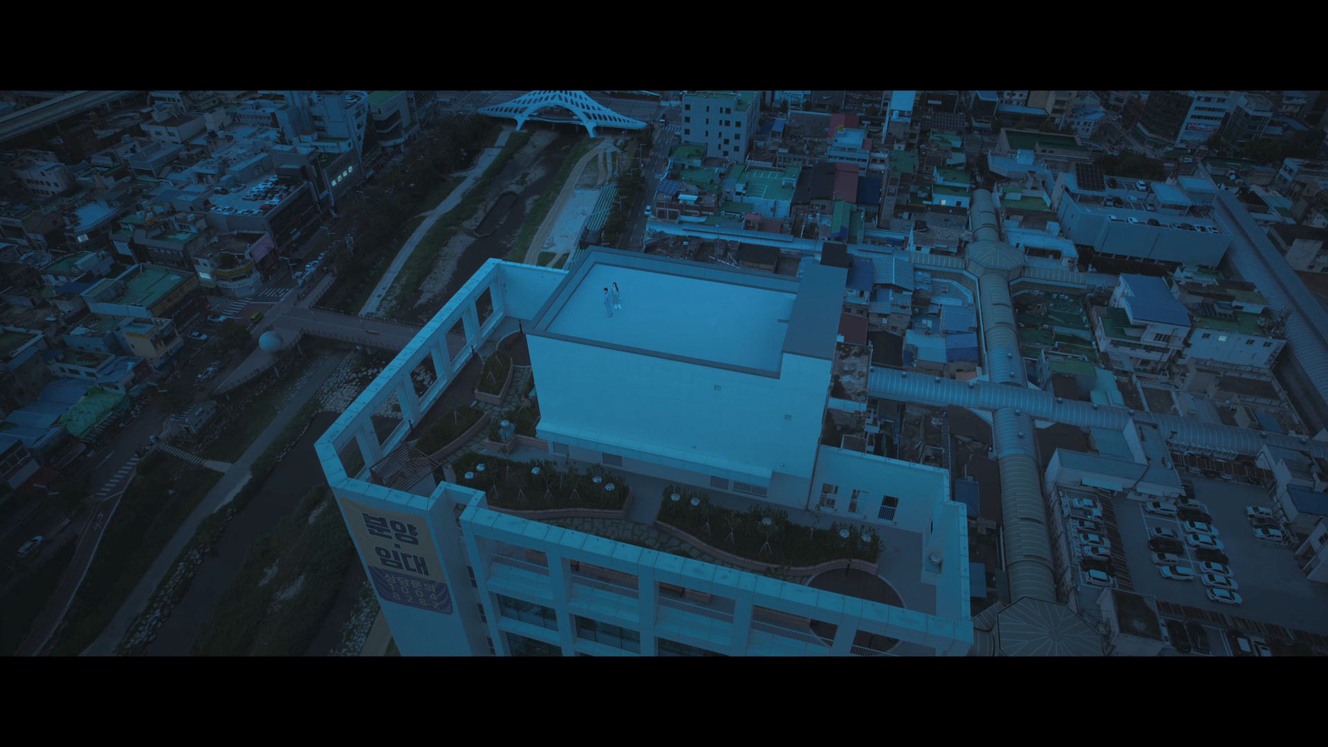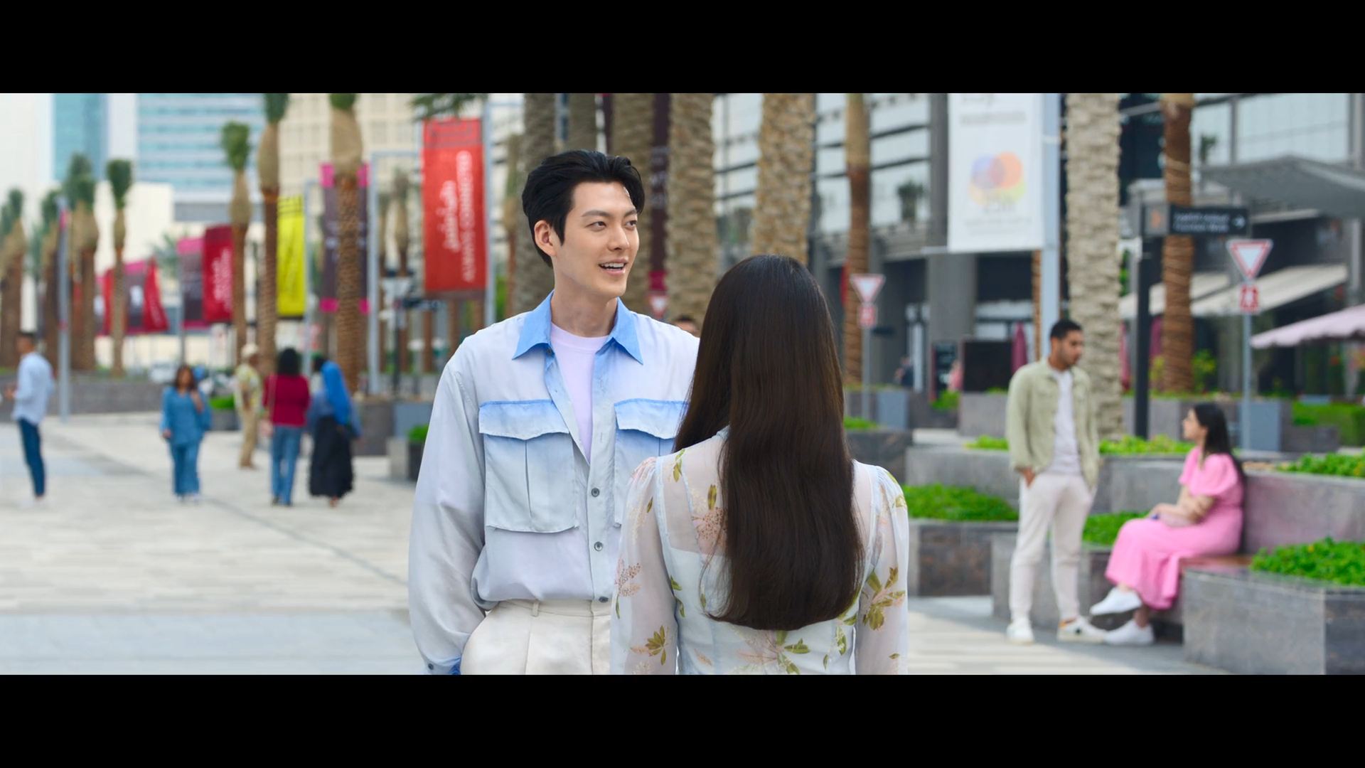 화려한 도심 속 카페에서 벌어지는 긴장감 넘치는 장면,