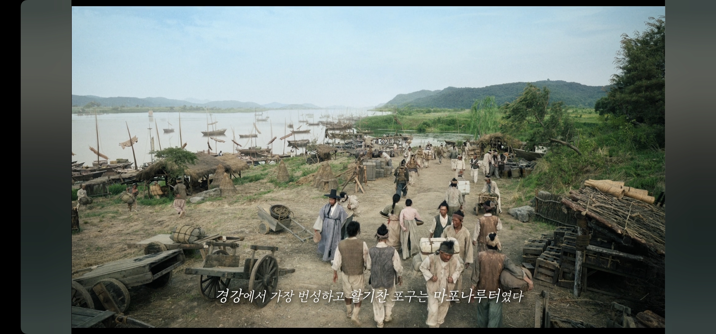 탁류는 조선 시대 경강(한강 마포나루)을 배경으로 합니다. 푸르던 강이 온갖 부패와 탐욕, 혼란으로 "탁류"(흙탕물처럼 흐린 강물)로 변해가면서 혼돈의 시절이 펼쳐집니다.