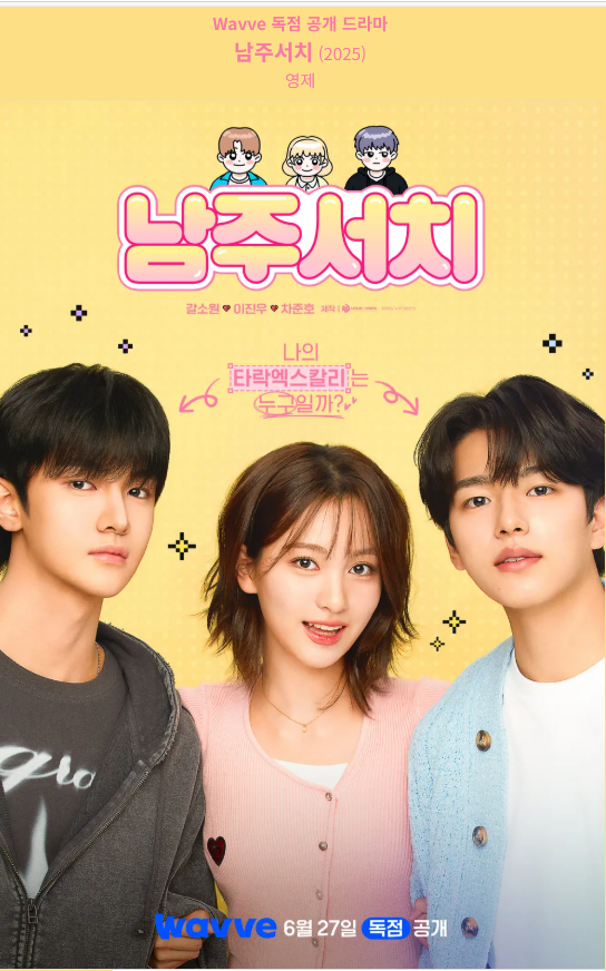 남주서치는 2025년 6월 27일부터 Wavve에서 독점 공개되는 신개념 미스터리 삼각 코믹 로맨스 드라마입니다. 게임 결혼식에서 잠적한 약혼자를 찾아 대학에 입학한 오설렘이 ‘랜선 남주’를 찾아 헤매다 현실 사랑을 찾아가는 이야기를 그립니다.